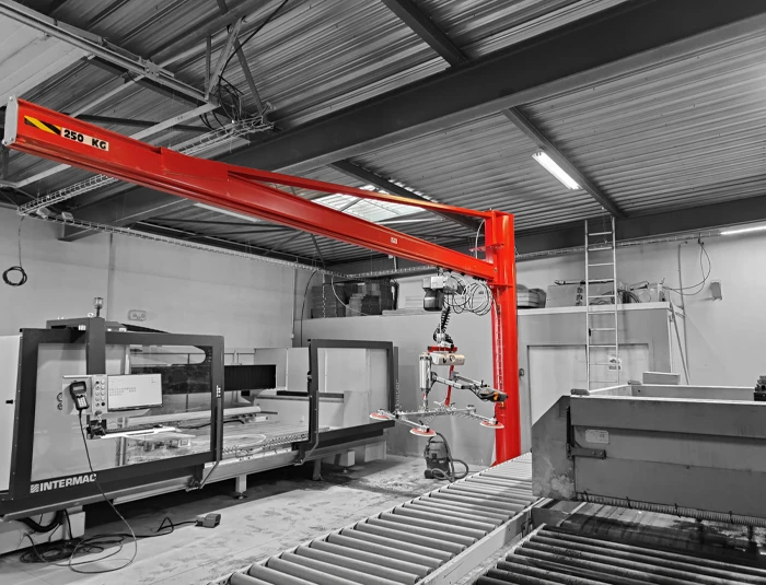 L’appareil comprend un palan à chaîne, un système de sécurité empêchant la libération du verre tant qu’il n’est pas correctement posé, ainsi qu’une poignée ergonomique pour un confort optimal lors de l’utilisation. La poutre de levage est équipée de quatre ventouses BA 270, assurant une prise stable et sécurisée. Le manipulateur ventouses basculement 90° ERGO VITRAGE UGL 3 peut supporter des charges de 250 kg ou 500 kg, selon le modèle, ce qui le rend adapté à une large gamme d’applications et idéal pour les menuiseries et les miroiteries.