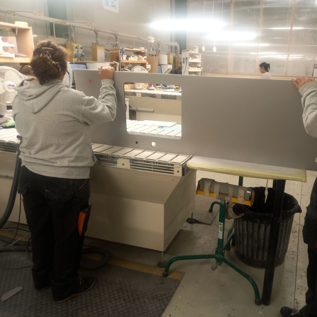 - Chaîne de vernissage : un second appareil assiste l’opérateur pour déposer les panneaux sur le tapis sans effort, garantissant confort et sécurité.