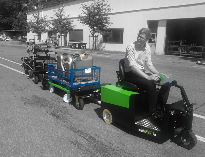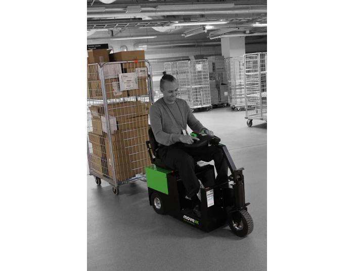 Le CC2500-S est un tracteur pousseur électrique conçu pour faciliter le déplacement de charges lourdes jusqu’à 2500 kg tout en offrant un grand confort d’utilisation. Alimenté par des batteries rechargeables, il est piloté à l’aide d’un timon articulé, l’utilisateur prenant place sur un siège ergonomique et sécurisé pour des manœuvres précises et sans effort.