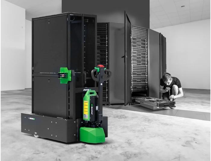 Le TT1500-M-SR est un tracteur pousseur électrique performant conçu pour simplifier le déplacement sûr, ergonomique et efficace de charges lourdes, notamment les racks de serveurs, conteneurs roulants, chariots, rolls et autres équipements similaires, dans des environnements industriels variés. Avec une capacité allant jusqu’à 1 500 kg, il répond parfaitement aux besoins des centres de données et des opérations logistiques internes, même dans des espaces restreints.