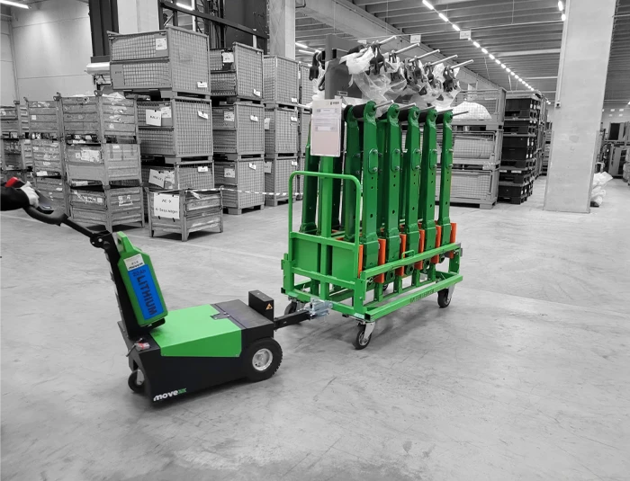 Le tracteur pousseur TT1500-S est un tracteur électrique, compact et robuste, conçu pour faciliter la manipulation de charges jusqu’à 1.5 tonne. Alimenté par des batteries rechargeables, il est idéal pour une utilisation dans des environnements où les nuisances sonores doivent être limitées. Le pilotage se fait à l’aide d’un timon articulé, permettant à l’utilisateur de marcher confortablement à côté de la machine tout en gardant un contrôle total. Le tracteur pousseur TT1500-S est parfaitement adapté pour tracter des charges du type rolls ou chariots.