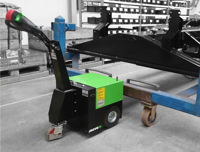 Le TT2500-S-Push est un tracteur-pousseur électrique compact conçu pour le déplacement de charges lourdes jusqu’à 2,5 tonnes. Grâce à son propre poids, il génère une traction optimale, garantissant son efficacité sur différents types de surfaces. Il est idéal pour les environnements où la manipulation de chariots ou de rolls, avec ou sans crochets pliants, est nécessaire. Avec l’ajout d’un module de levage optionnel, ce modèle peut également manipuler des chariots dépourvus de crochets.