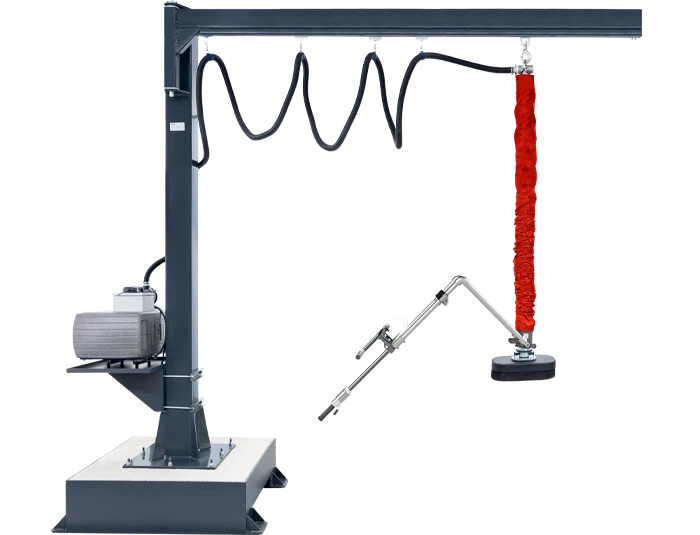 La pompe à vide génère une pression négative, réglable via la poignée. En ajustant cette pression, vous pouvez décider de contracter le tuyau pour soulever la charge ou de l’étendre pour la déposer en douceur.